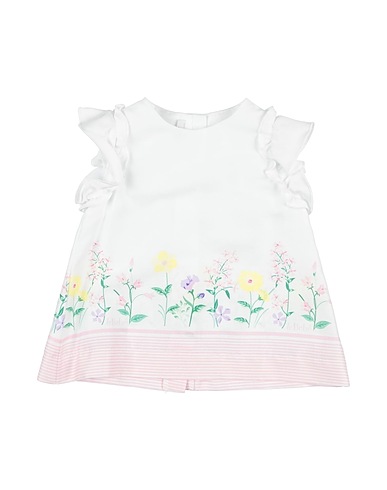 woven, floral-print, ruffles, brand logo, crewneck, short sleeves, button fastenings, hand wash or dry clean, do not bleach, do not tumble dry