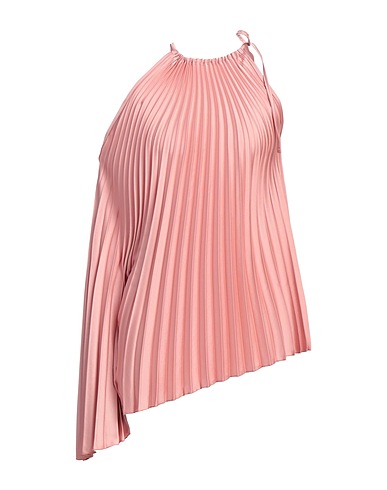 top, satin, plain colour, pleated, brand logo, crewneck, sleeveless, tie fastening, machine wash or dry clean, do not bleach, tumble dry