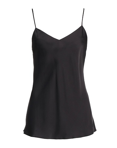 camisole, satin, plain colour, embroidered logo, deep neckline, sleeveless, machine wash or dry clean, do not bleach, do not tumble dry