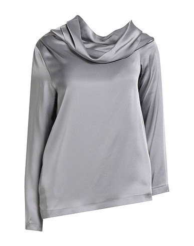 top, satin, stretchy fabric, plain colour, no appliqués, draped neckline, long sleeves, multipockets, dry clean, do not bleach, do not tumble dry