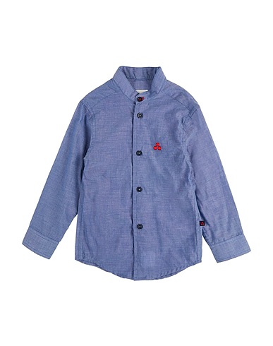 woven, denim effect, plain colour, embroidered logo, coloured wash, mandarin collar, long sleeves, button fastenings, stretchy fabric, machine wash, do not bleach, do not tumble dry, this brand runs small