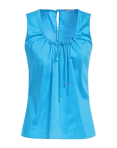 top, poplin, stretchy fabric, plain colour, gathered, scoop neckline, sleeveless, 1 button, tie fastening, hand wash or dry clean, do not bleach, do not tumble dry