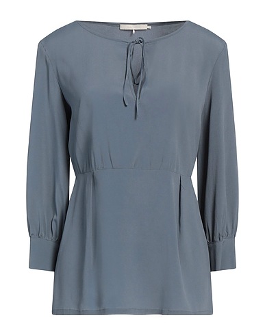top, crepe, plain colour, gathered, crewneck, long sleeves, snap-fastening cuffs, tie fastening, stretch, dry clean, do not bleach, do not tumble dry