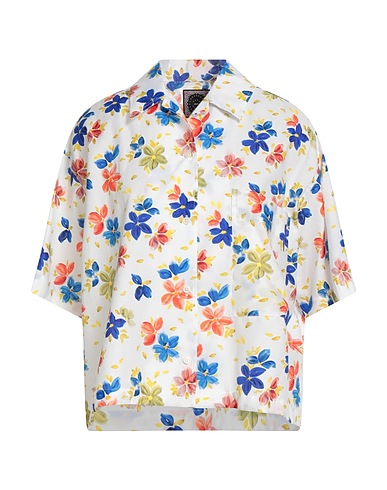 shirt, woven, floral-print, no appliqués, camp collar, short sleeves, button fastenings, one chest pocket, dry clean, do not bleach, do not tumble dry