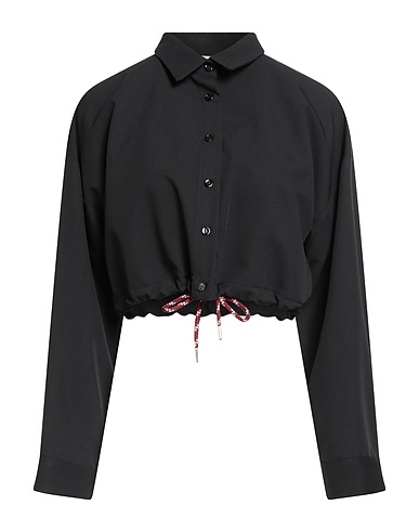 shirt, woven, plain colour, no appliqués, classic collar, long sleeves, button fastenings, drawstring hem, stretch, machine wash or dry clean, do not bleach, do not tumble dry