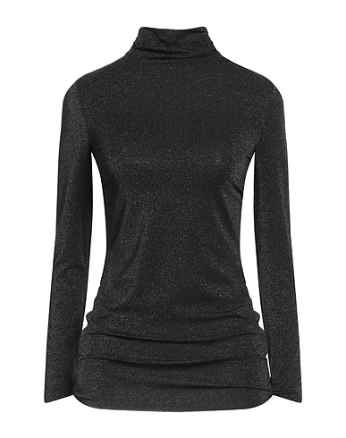 top, jersey, metallic, two-tone, gathered, turtleneck, long sleeves, raw-cut hem, stretch, hand wash, do not bleach, do not tumble dry, do not iron
