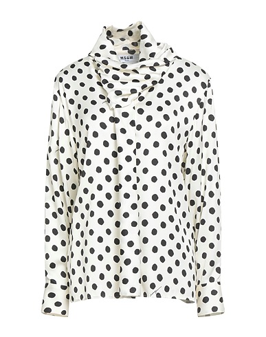 shirt, satin, polka-dot, brand logo, mock neck, long sleeves, buttoned cuffs, button fastenings, dry clean, do not bleach, do not tumble dry