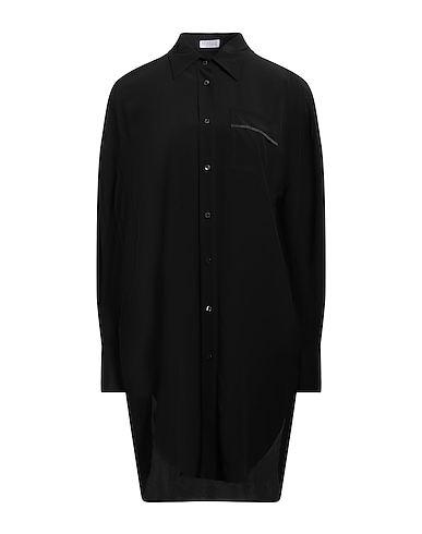 long shirt, georgette, plain colour with appliqués, embellished, classic collar, long sleeves, buttoned cuffs, button fastenings, one chest pocket, contains non-textile parts of animal origin, dry clean, do not bleach, do not tumble dry