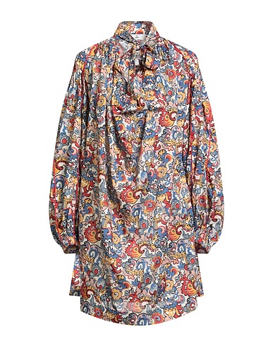 dress, woven, floral-print, no appliqués, bow-tie neckline, long sleeves, machine wash or dry clean, do not bleach, do not tumble dry
