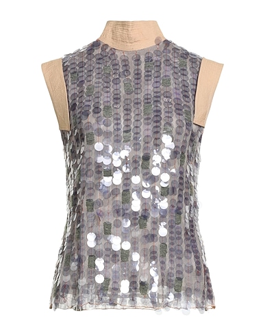 top, tulle, multicolour, sequins, turtleneck, short sleeves, snap fastenings, dry clean, do not bleach, do not tumble dry
