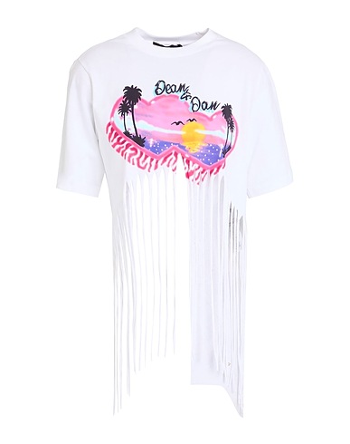 printed t-shirt, jersey, plain colour with print, fringes, crewneck, short sleeves, machine wash, do not bleach, do not tumble dry