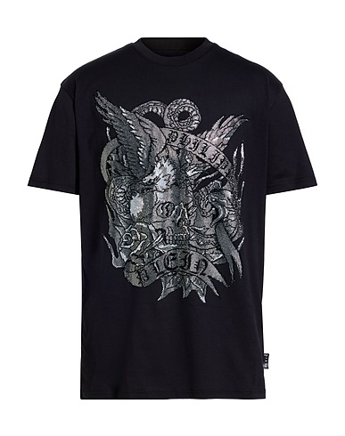 t-shirt, jersey, plain colour with appliqués, crystals, brand logo, crewneck, short sleeves, hand wash, do not tumble dry