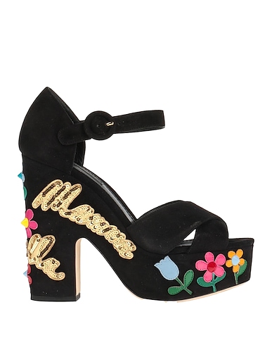 sandals, suede, plain colour with appliqués, embellished, sequins, buckle-fastening ankle strap, round toe, block heel, leather lining, leather sole, contains non-textile parts of animal origin