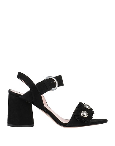 sandals, suede, plain colour, floral appliqués, studs, buckle-fastening ankle strap, round toe, geometric heel, leather lining, leather sole, contains non-textile parts of animal origin, large sized