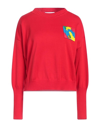 knitted, lightweight knit, plain colour with appliqués, brand logo, crewneck, long sleeves, without pockets