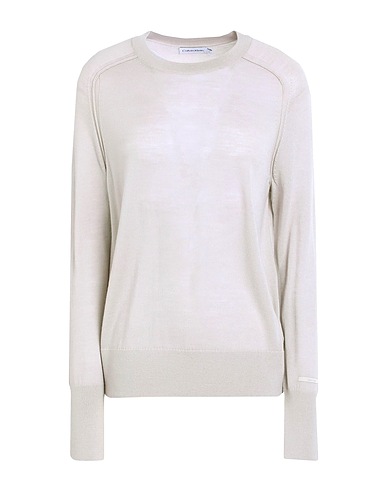 knitted, wool, lightweight knit, brand logo, plain colour, crewneck, long sleeves, slit cuffs, no pockets