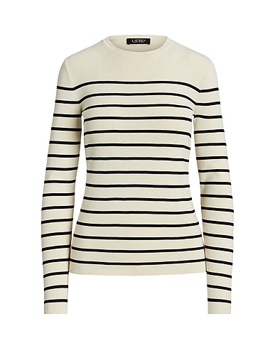 knitted, lightweight knit, no appliqués, striped, crewneck, long sleeves, machine wash or dry clean, do not tumble dry, do not bleach