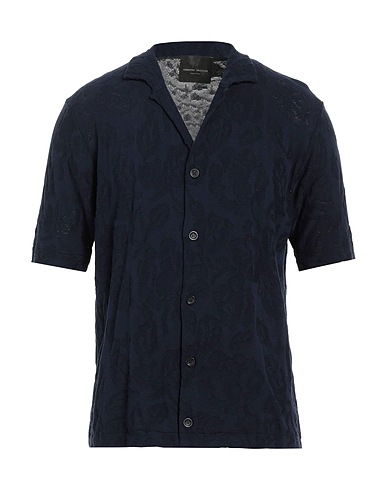 regular-fit shirt, knitted, jacquard, lightweight knit, plain colour, no appliqués, camp collar, short sleeves, button fastenings, hand wash or dry clean, do not bleach, do not tumble dry, this brand runs large