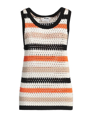 top, open-knit, medium-weight knit, striped, brand logo, scoop neckline, sleeveless, dry clean, do not bleach, do not tumble dry, this brand runs large