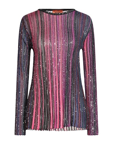 intarsia-knit, lightweight knit, signature print, sequins, crewneck, long sleeves, dry clean, do not bleach, do not tumble dry