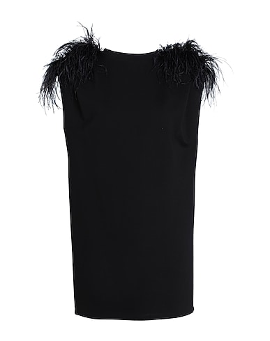 jersey, feathers, solid colour, round collar, sleeveless, unlined, no pockets, stretch, dress