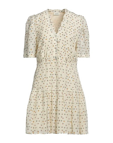 plain weave, frills, floral design, v-neck, short sleeves, fully lined, no pockets, shirt dress