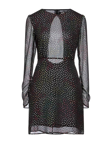 crepe, metallic print, multicolour pattern, crewneck, long sleeves, partially lined interior, button closing, zipper closure, no pockets, trapeze style