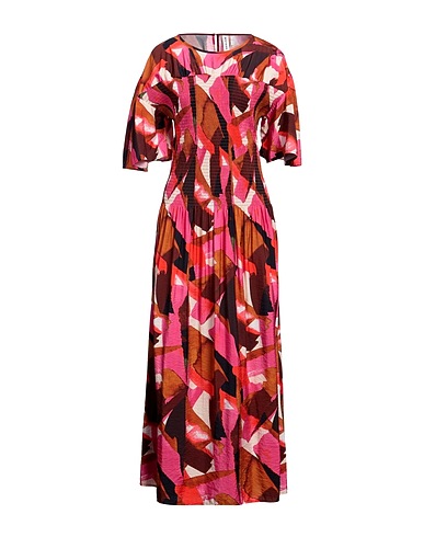 plain weave, frills, multicolour, crewneck, 3/4 length sleeves, unlined, button closing, no pockets, trapeze style