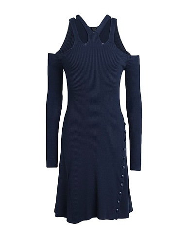 flared dress, knitted, lightweight knit, stretchy fabric, plain colour, embellished, cold-shoulder, long sleeves, unlined, hand wash, do not tumble dry