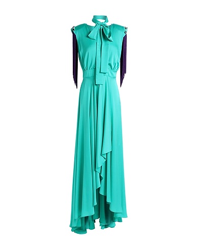 satin, fringes, crystals, plain colour with appliqués, deep neckline, sleeveless, detachable lining, no pockets, asymmetric dress