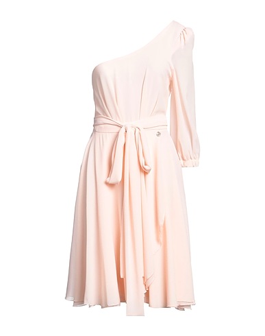 crepe, brand logo, plain colour, scoop neckline, one-shoulder, fully lined, zip fastening, without pockets, flared dress