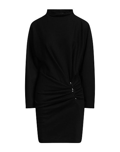 crepe, gathered, embellished, brand logo, plain colour with appliqués, turtleneck, long sleeves, unlined, without pockets, stretch, dry clean, do not bleach, do not tumble dry, bodycon dress