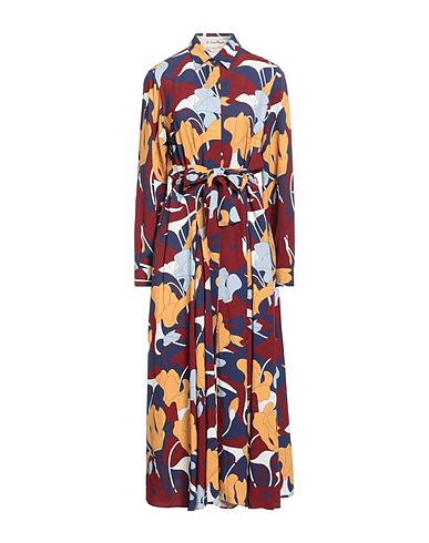 shirt dress, crepe, floral-print, belt, classic collar, long sleeves, buttoned cuffs, unlined, button fastenings, dry clean, do not bleach, do not tumble dry