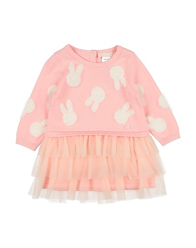 knitted, tulle, two-tone, tiered, brand logo, crewneck, long sleeves, button fastenings, hand wash, do not bleach, do not tumble dry