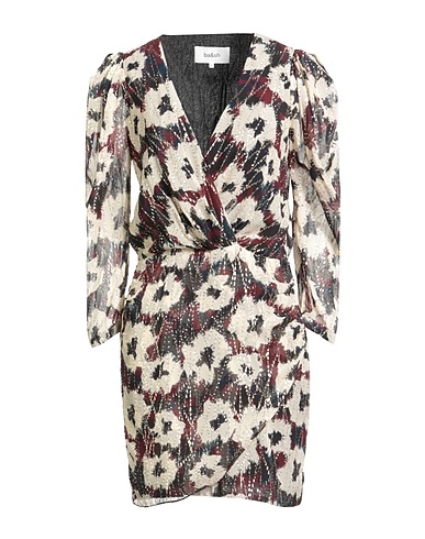 dress, georgette, metallic, multicolour, wrap-effect, draped, deep neckline, long sleeves, puffed sleeves, partially lined, zip fastening, hand wash or dry clean, do not bleach, do not tumble dry
