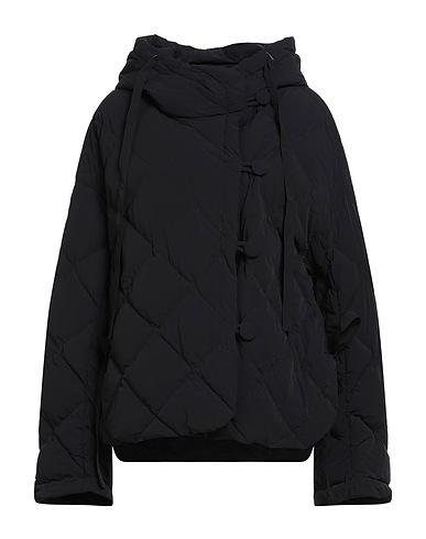 down jacket, shell, quilted, brand logo, plain colour, hooded, long sleeves, goose down interior, lightweight padding, button fastenings, multipockets, contains non-textile parts of animal origin, dry clean, do not bleach, do not tumble dry