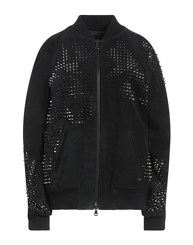 suede, studs, plain colour with appliqués, crewneck, single-breasted , long sleeves, fully lined, zip fastening, multipockets, contains non-textile parts of animal origin, specialist clean or dry clean, bomber jacket