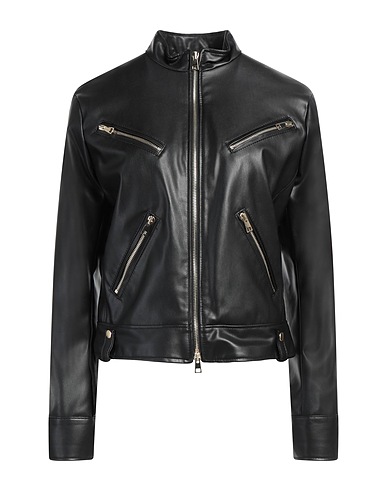 biker jacket, coated fabric, plain colour, no appliqués, turtleneck, single-breasted , long sleeves, fully lined, zip fastening, zipped pockets, dry clean, do not bleach, do not tumble dry, do not iron