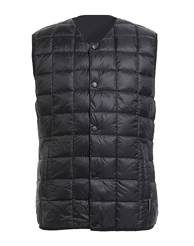 shell, quilted, brand logo, plain colour, v-neck, sleeveless, goose down interior, lightweight padding, snap fastenings, slit pockets, contains non-textile parts of animal origin, machine wash, do not bleach, do not tumble dry