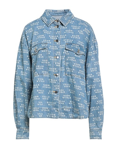 denim, logo-print, no appliqués, light wash, classic collar, long sleeves, snap fastenings, two chest pockets, machine wash or dry clean, do not bleach, do not tumble dry