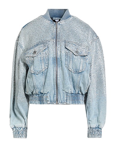 denim bomber jacket, denim, plain colour with appliqués, crystals, knitted trims, medium wash, crewneck, long sleeves, fully lined, zip fastening, faux pockets, two chest pockets, hand wash, do not bleach, do not tumble dry