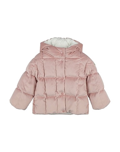 velvet, stretchy fabric, brand logo, plain colour, hooded, long sleeves, goose down interior, heavyweight padding, zip fastening, slit pockets, contains non-textile parts of animal origin, machine wash, do not bleach, do not tumble dry