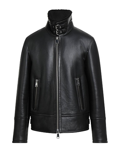 shearling jacket, leather, strap detailing, plain colour, classic collar, long sleeves, lined in shearling, zipped pockets, contains non-textile parts of animal origin, dry clean, do not bleach, do not tumble dry