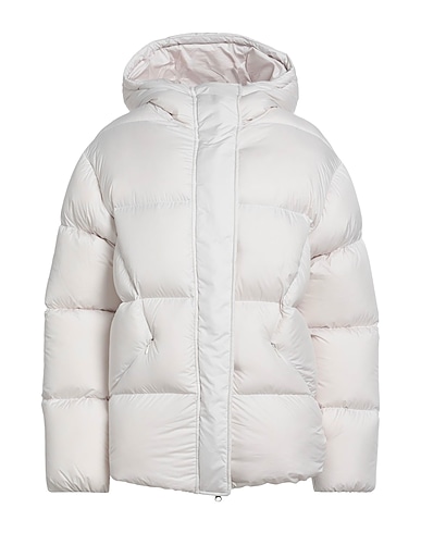 down jacket, shell, brand logo, plain colour, hooded, long sleeves, duck down filling, heavyweight padding, zip fastening, snap fastenings, zipped pockets, contains non-textile parts of animal origin, machine wash or dry clean, do not bleach, tumble dry