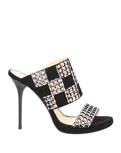 leather, openwork, suede effect, rhinestones, solid colour with appliqués, leather backing, round toeline, spike heel, covered heel, leather sole, contains non-textile parts of animal origin, sandals