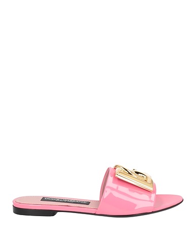 slide sandals, patent leather, plain colour with appliqués, brand logo, leather lining, round toe, flat, leather sole, contains non-textile parts of animal origin