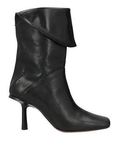 leather, no appliqués, solid colour, leather backing, square toeline, geometric heel, leather sole, contains non-textile parts of animal origin, ankle boots