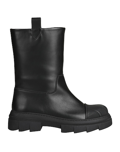 leather, no appliqués, plain colour, leather backing, round toeline, square heel, rubber sole, contains non-textile parts of animal origin, chunky boots