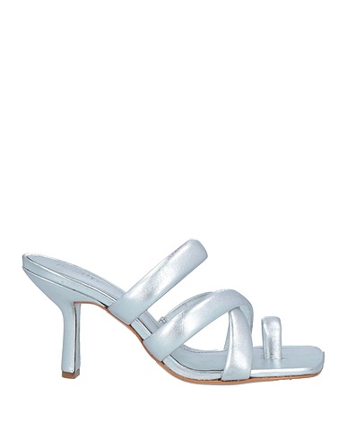 toe strap sandals, leather, metallic, plain colour, no appliqués, leather lining, square toe, spike heel, leather sole, contains non-textile parts of animal origin