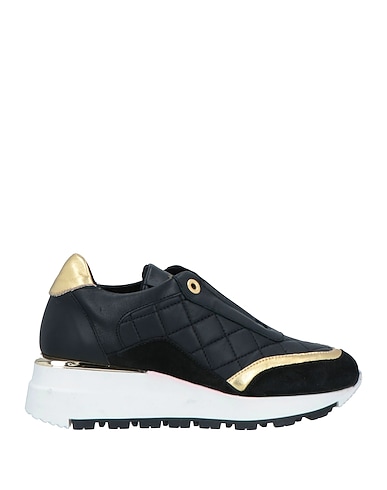 low-top trainers, quilted, suede effect, metallic, two-tone, brand logo, lace-up, round toe, wedge, rubber sole, leather lining, contains non-textile parts of animal origin